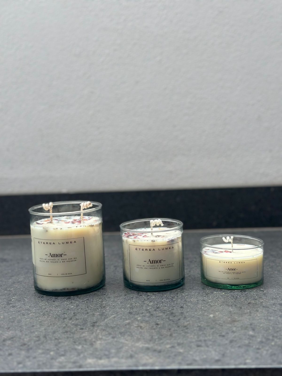 La vela mágica Amor celebra todas las formas de amar: pasional, romántico, consciente y profundo. Hecha a mano con cera de soya orgánica e intenciones herbales, está lista para acompañarte en rituales de conexión emocional y vínculos nuevos o para reavivar llamas del pasado.